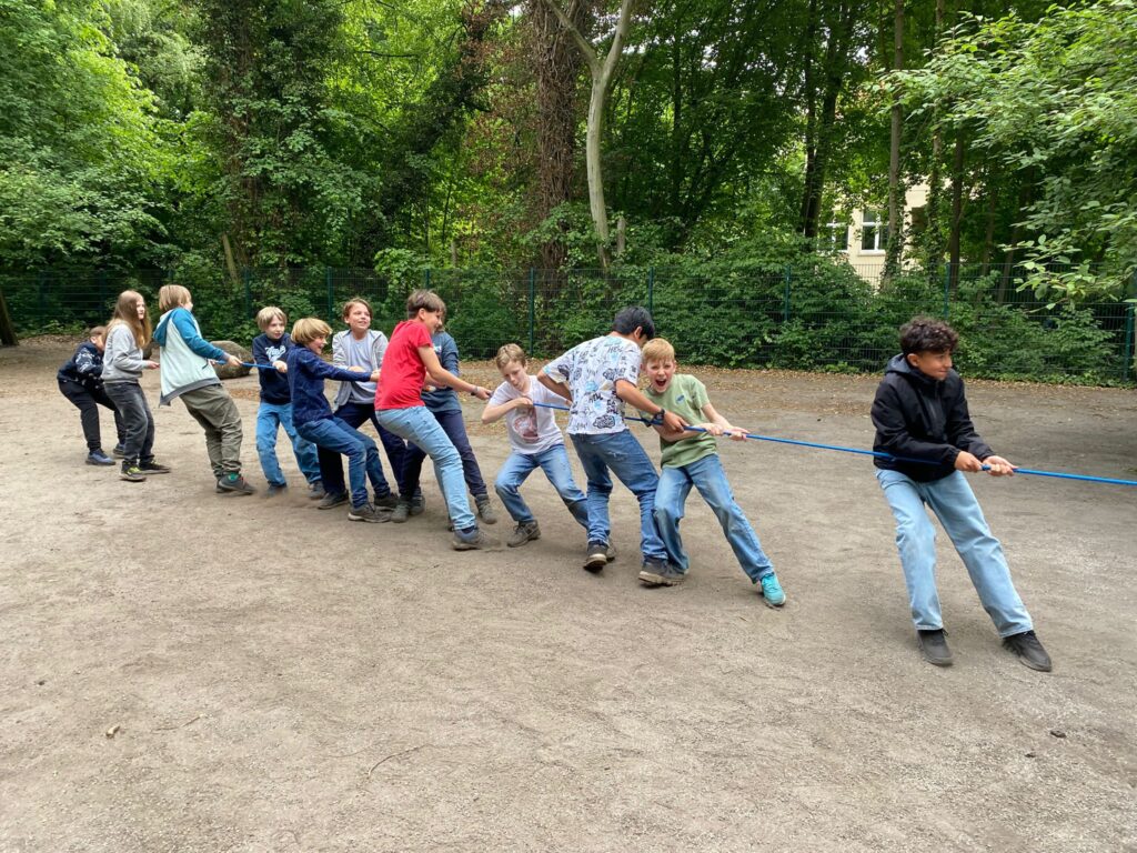 Unsere neuen Klassen 5 eröffnen diese Woche die Saison der Wandertage mit einer ganz besonderen Aktion: einem Teamtraining im Wald! Mit zwei Trainern von FORA e.V. begeben sich dabei die Schülerinnen und Schüler jeweils einer Klasse zusammen mit ihrem Klassenleitungsteam und den Vertrauensschülerinnen und -schülern in den Wald bei Petersfehn und lernen sich dabei besser