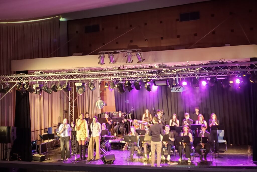 Fünf BigBands in einem Konzert gab es am Donnerstag in der Aula des NGO zu sehen. Die Cäci-BigBand war mit dabei und vertrat die Schule beim jährlichen BigBand-Meeting. Ebenfalls Teil bei diesem musikalischen Austausch waren diesmal die BigBands von der LFS, dem GEO, HGO sowie dem NGO. Ein energiereicher Abend mit hohem musikalischen Niveau auf