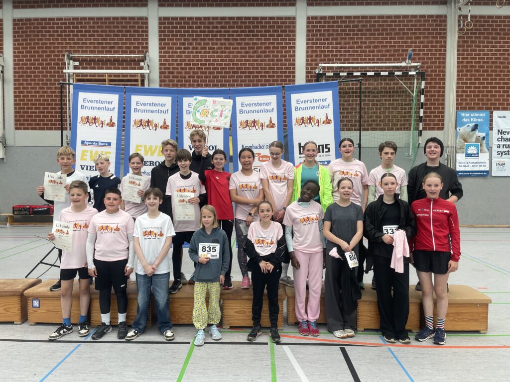Trotz widrigen Wetters war die Cäci mit knapp 50 Läuferinnen und Läufern auch in diesem Jahr wieder sehr erfolgreich beim Brunnenlauf in Eversten am Start. Hervorzuheben sind die Leistungen von Lina Grandke aus der Klasse 6c (9:32 Minuten) und Clara Detmers aus der Klasse 7m (9:33 Minuten), die die 2,4 Kilometer als absolut schnellste Mädchen