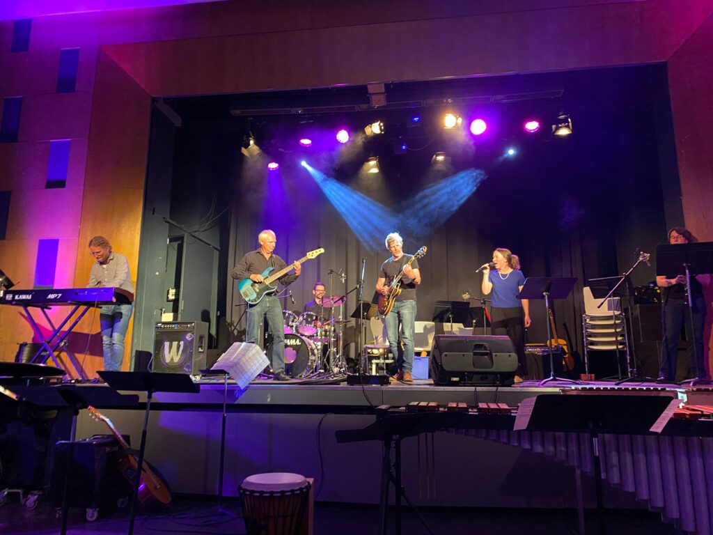 Musikalisch vielseitig gestaltete sich der Mittwochabend in der Aula. Kleiner Chor, Small-Band und Percussion-Band präsentierten ihre Stücke aus dem Schuljahr, darunter sogar ein gemeinsames Stück aus ‚König der Löwen‘, bei dem der Chor und die Percussion-Band fusionierten. Den Abschluss bildete die Lehrer:innen-Band sowie das obligatorische Eis von Petra für alle Mitwirkenden. Text: Ra, Foto(s): Lt,