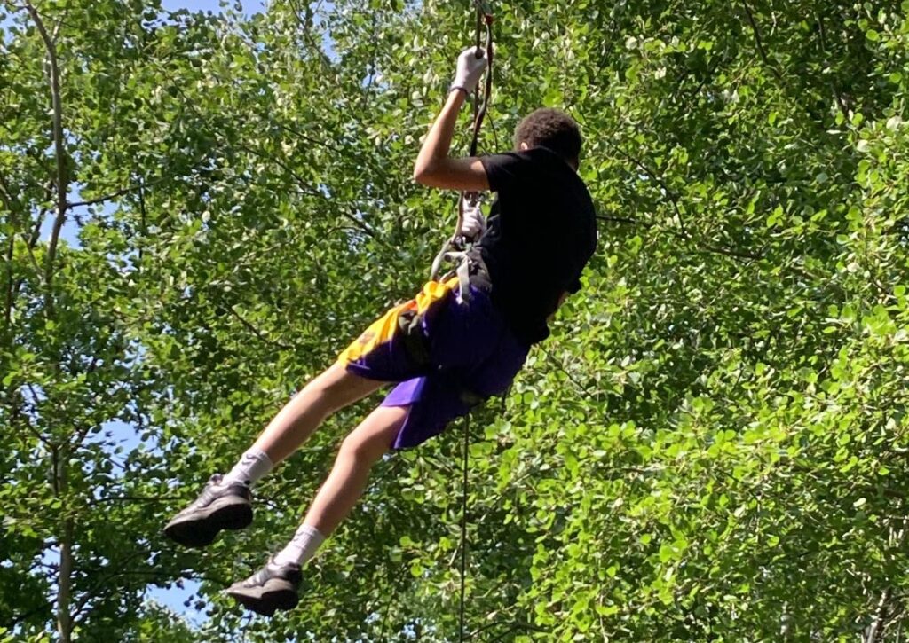 Bei bestem Wetter verbrachte die 10a ihren Wandertag im Kletterpark Conneforde. Nach einer sorgfältigen Einweisung in die eigene Sicherung konnten sich die Schülerinnen und Schüler selbständig Kletterpacours mit unterschiedlichen Schwierigkeitsgrad aussuchen. Am beliebtesten war die schwungvolle Fahrt am Seil über einen See. Den krönenden Abschluss des Tages bildete ein gemeinsames Pizzaessen. Text: Hr, Foto(s): Hr