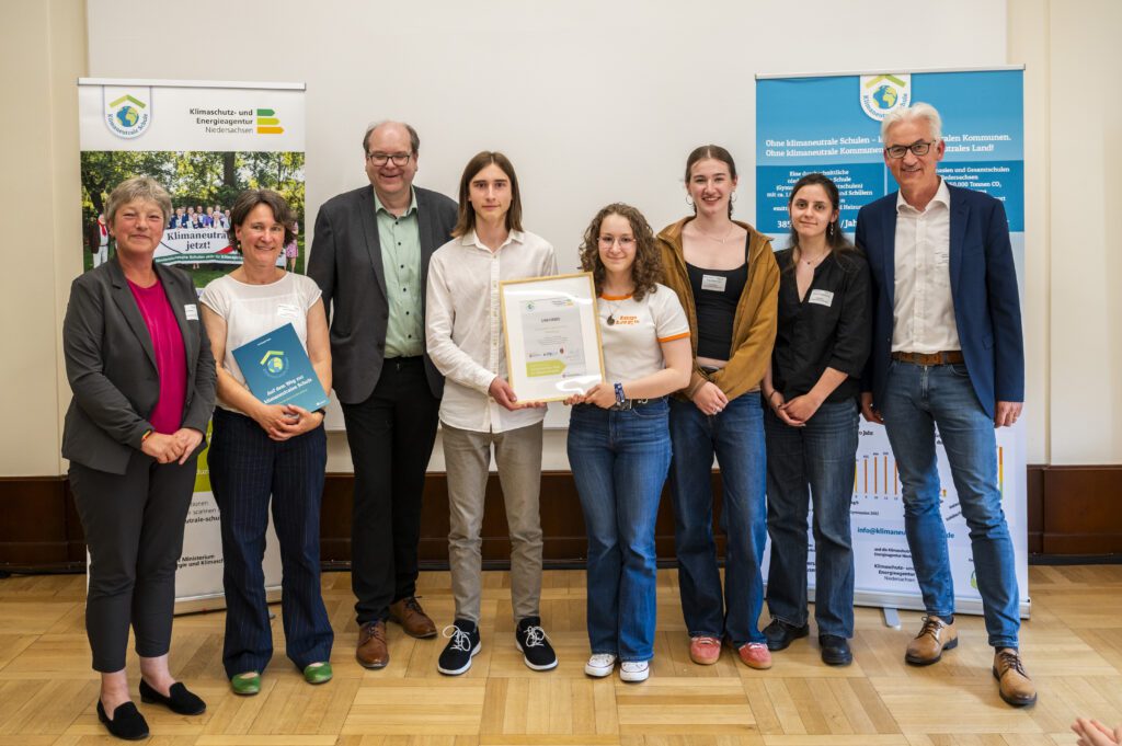 Auch in diesem Jahr wurde die Cäci für ihr Engagement für den Klimaschutz ausgezeichnet. Dafür fuhr eine Abordnung von Schülerinnen und Schülern mit Frau Tellechea zu einer kleinen Feier nach Hannover und erhielt die Auszeichnung durch Umweltminister Meyer und Herrn Nolte. Wir sind auf dem Weg zu einer klimaneutralen Schule, benötigen dafür aber das Engagement