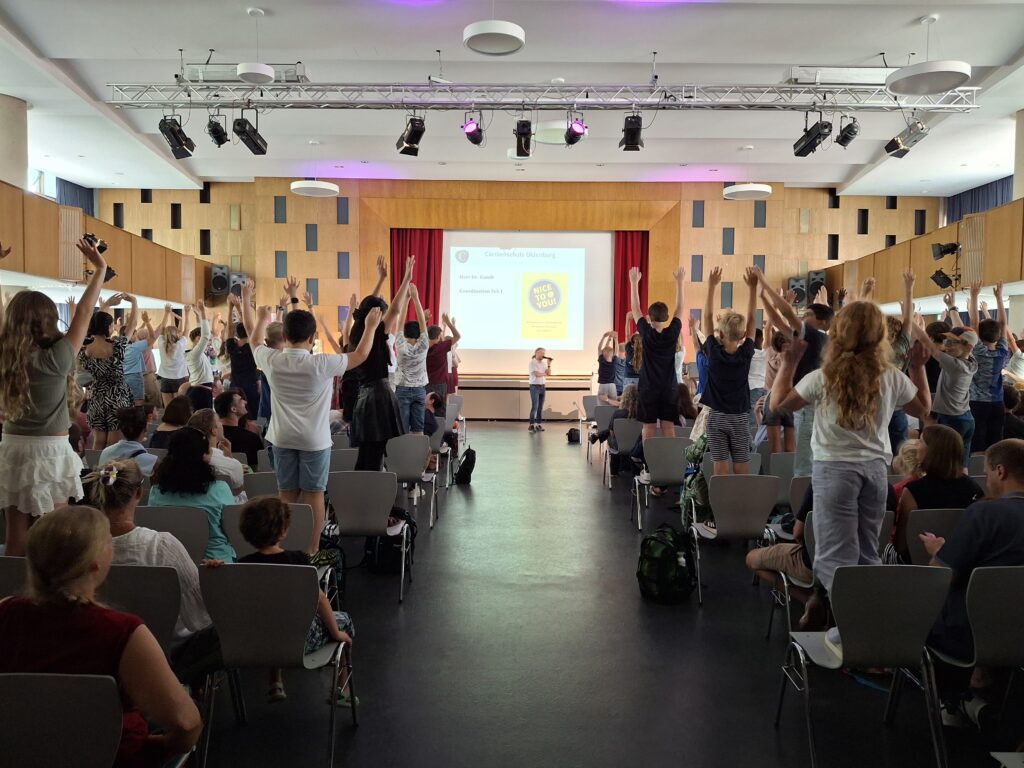 Tag 1 des neuen Schuljahres – für die Jahrgänge 6 bis 13 war es eine Rückkehr in vertraute Räume, zu vertrauten Gesichtern und Abläufen. Und dennoch Aufregung wegen all des Neuen, das auch sie im kommenden Schuljahr erwartet. Bestimmt ebenfalls ein bisschen aufgeregt waren die neuen Kolleginnen und Kollegen, die vor und von der Schulgemeinschaft