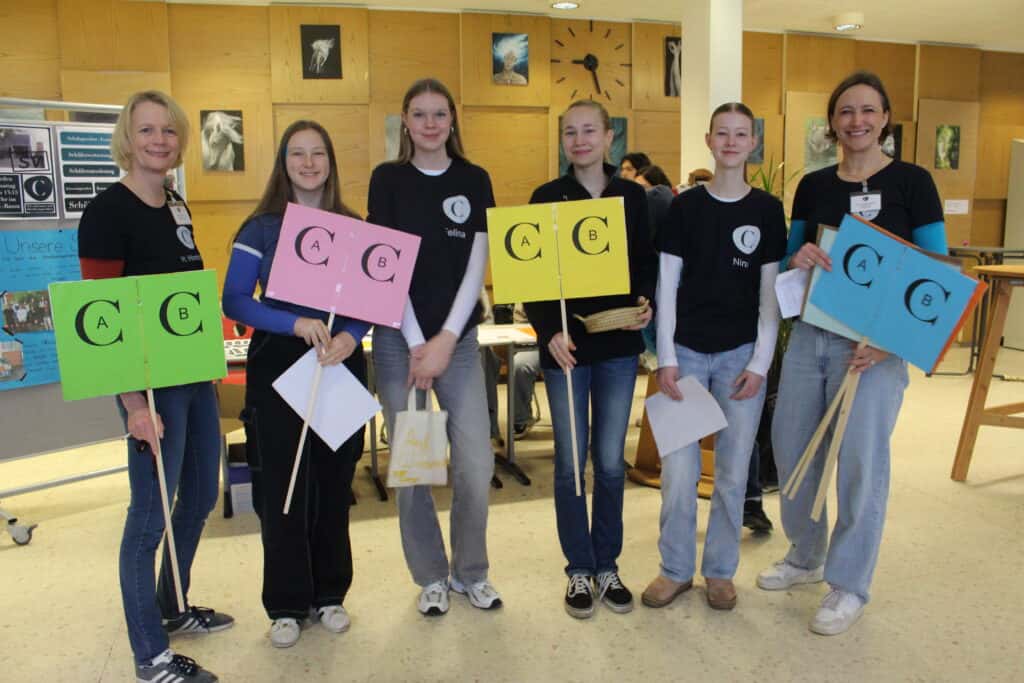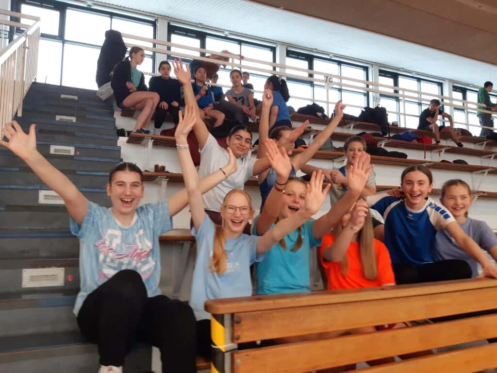 Das Cäci-Volleyballteam, bestehend aus Mila und Leni in der vorderen Reihe und Lina, Lotte, Fleur und Lena in der hinteren Reihe, hat sich am 23.01.2024 in der IGS Flötenteich gegen sehr starke Gegnerinnen nicht unterkriegen lassen. Für die nächste Runde, den Landesentscheid, hat es trotz spannender Spielphasen leider nicht gereicht. Wir gratulieren trotzdem zu jedem