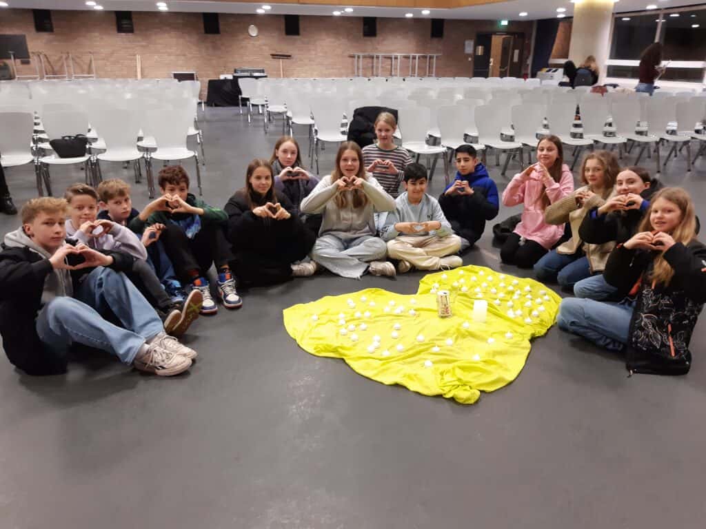 „… and a happy new year! Let´s hope it´s a good one without any fear!” (John Lennon) Diesen Wunsch teilen viele Menschen, auch an der Cäci. So haben heute Morgen vor Unterrichtsbeginn fast 40 Schülerinnen und Schüler verschiedener Jahrgangsstufen an der Aktion Friedenslicht in der Aula teilgenommen. Nachdem zunächst Steine für die Kriegsschauplätze weltweit in