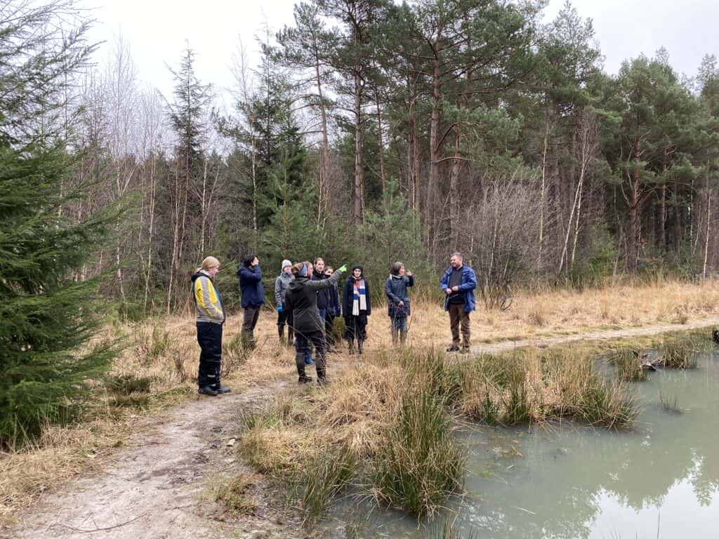 Nach einer ersten Exkursion im Frühsommer ist die earth action!-AG bei winterlichem Wetter ins Kesselmoor zurückgekehrt – nun allerdings mit Gartenscheren, Spaten und Sägen im Gepäck, denn „Entkusseln“ stand auf dem Programm. Mit diesem Fachbegriff ist die Entnahme von Jungbäumen und nicht standortgerechten Pflanzen gemeint. Die regelmäßigen Pflegeeinsätze sind erforderlich, damit das Moor und der