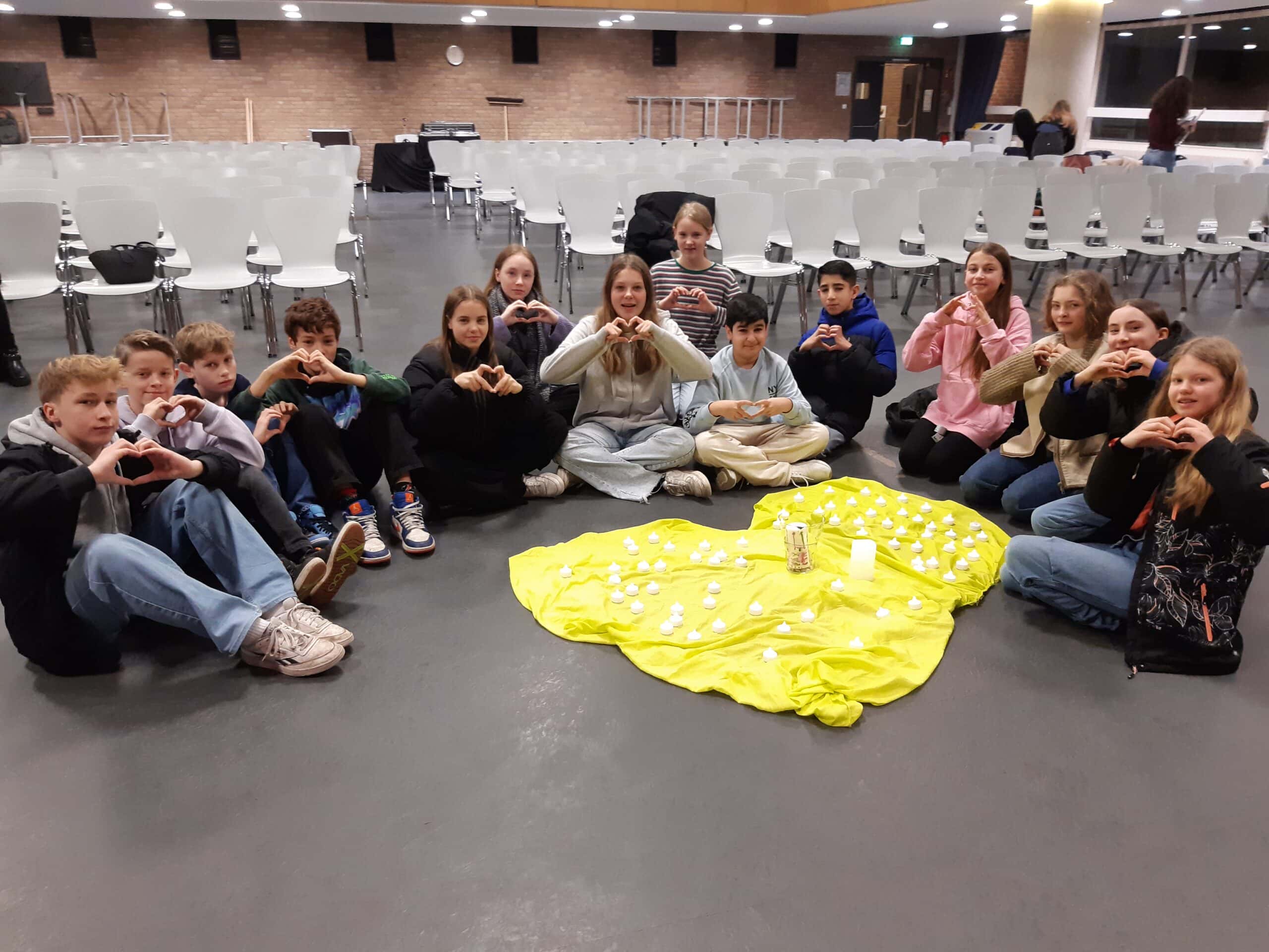 Jetzt am Wochenende gab und gibt es anlässlich des Gedenktages für die Opfer des Nationalsozialismus wieder viele Veranstaltungen und Demonstrationen, und auch an der Cäci haben Schülerinnen und Schüler wieder durch das Anzünden von Kerzen ein Zeichen gesetzt: Für das Erinnern an die Opfer und als Zeichen für ein Menschenbild, das den Menschen sieht und kein ideologisches Zerrbild. Schülerinnen und Schüler aus Jahrgang 6 und 7 waren an der Durchführung beteiligt und zündeten als Erste Teelichte an und formulierten den Satz des Gedenkens.