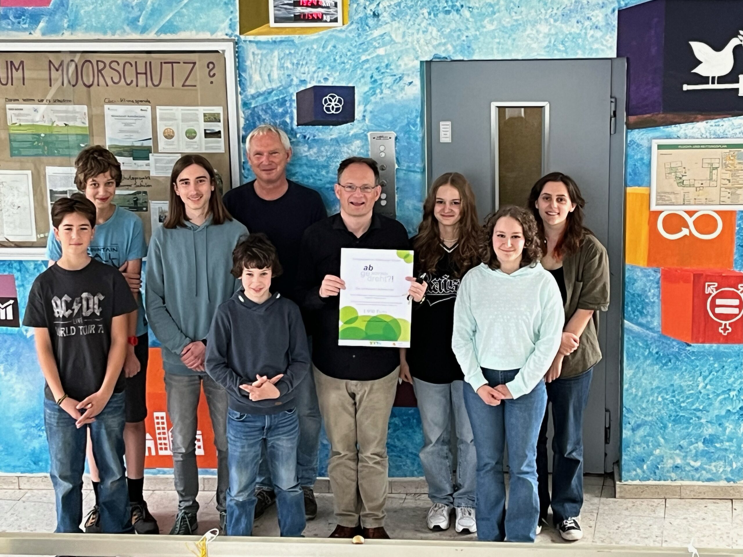 Wie in jedem Jahr erhielt die Cäcilienschule auch 2024 wieder die mit einer Urkunde und einem respektablen Geldbetrag verbundene Auszeichnung im abgedreht-Projekt der Stadt Oldenburg. Bei diesem Projekt werden nicht nur Aktivitäten der Energie-AG oder Exkursionen zu außerschulischen Lernorten zum Thema Nachhaltigkeit honoriert, sondern auch ganz konkrete Energiesparmaßnahmen belohnt. Die Energie-AG bekam als kleine Anerkennung vom Schulleiter persönlich die neue Dachkonstruktion der Schule präsentiert und informierte sich über die Möglichkeiten einer erweiterten Solaranlage.
