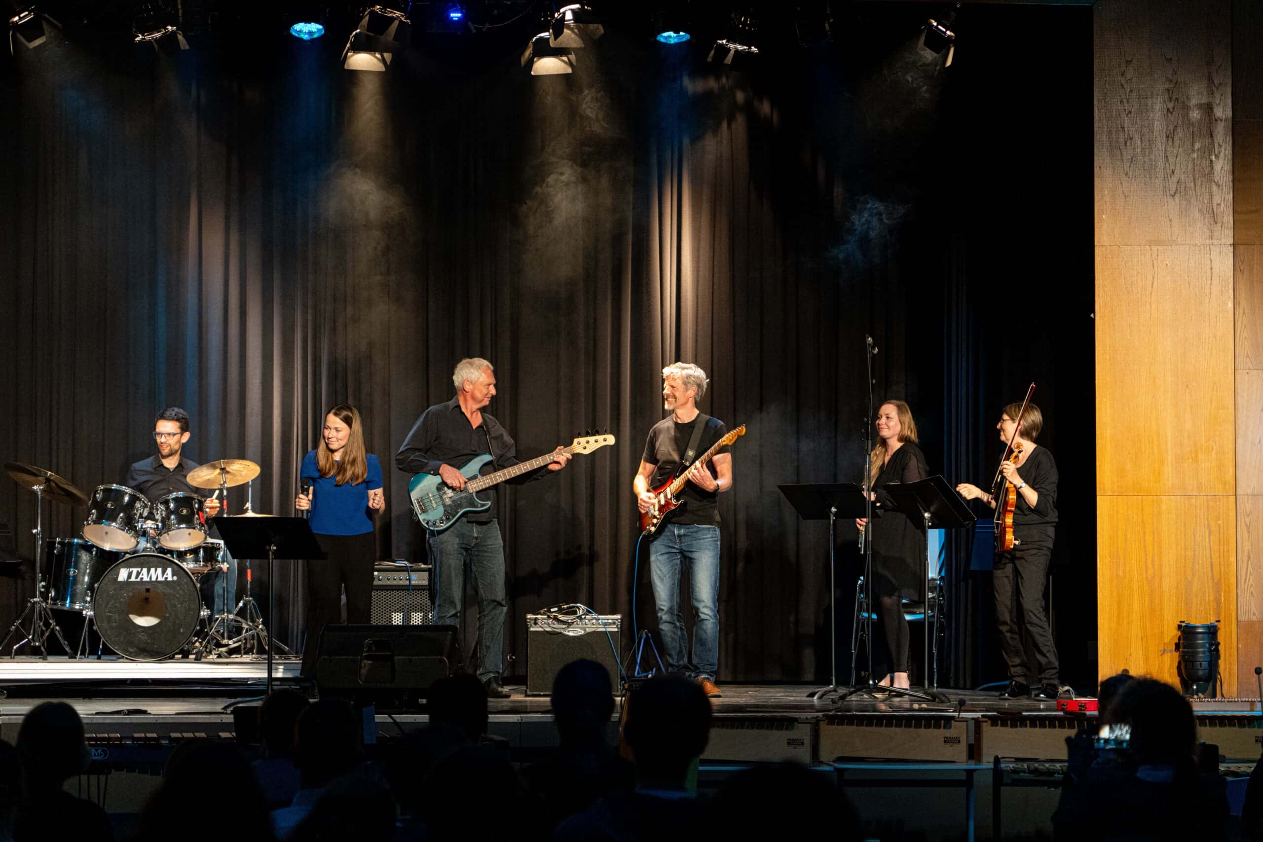 Am Dienstagabend folgte der letzte Teil der Sommerkonzerte an der Cäci mit ganz großer musikalischer Vielfalt. Die Small Band, Musikwerkstatt, der kleine Chor, die Percussion Band sowie die Lehrerband sorgten für ordentlich musikalische Stimmung in der Aula. Ein Fest für Eltern und Kinder, egal ob klein oder groß! Ein gelungener Abschluss des Schuljahres im musikalischen Sinne.