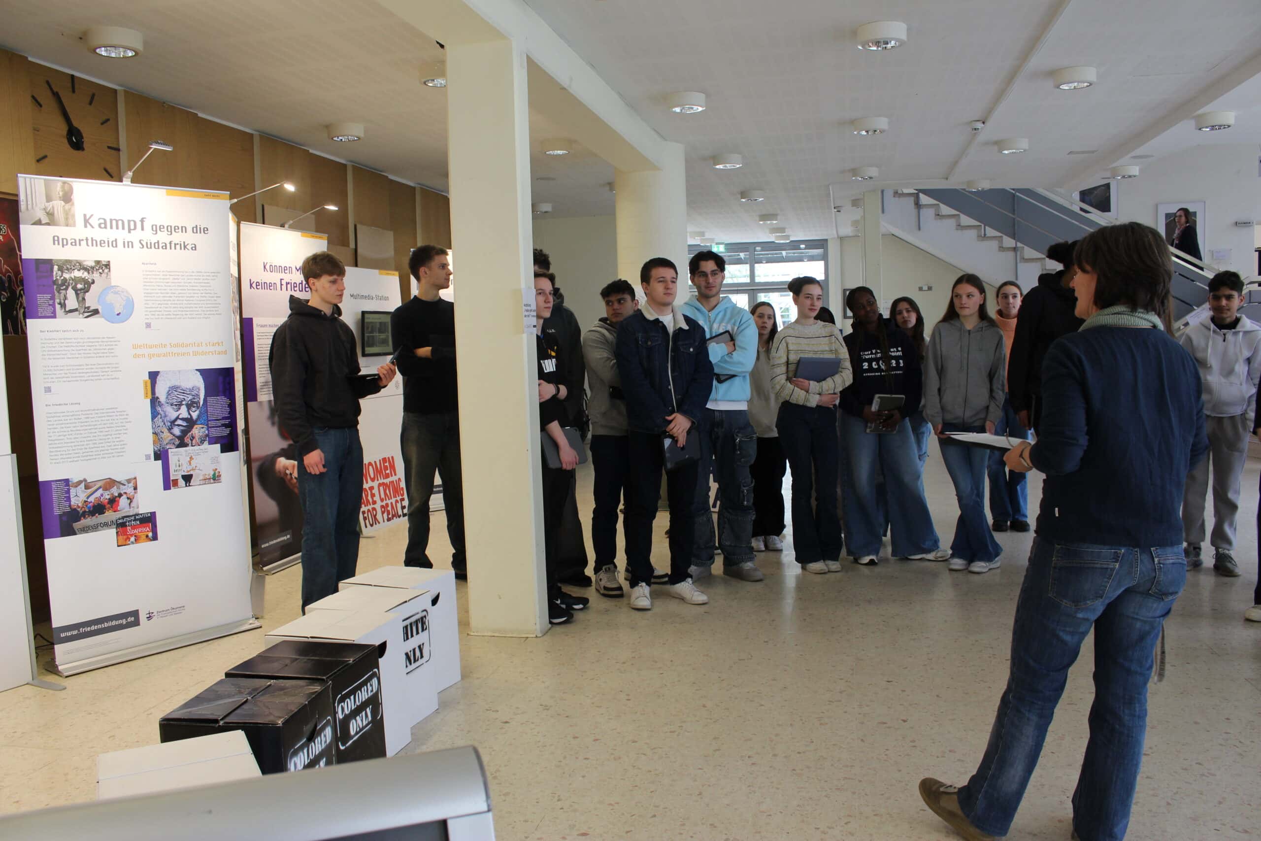 Im Rahmen unserer Aktivitäten als UNESCO-Projektschule zeigen wir anlässlich des diesjährigen Projekttagsmottos „Frieden!#Händereichen#Brückenbauen!“ die Ausstellung „Frieden geht anders – aber wie?“ Die Ausstellung zeigt an sieben konkreten Konflikten auf, wie mit unterschiedlichen gewaltfreien Methoden Kriege und kriegerische Auseinandersetzungen verhindert oder beendet werden konnten. Alle Klassen ab Jahrgang 8 sind eingeladen, die Ausstellung zu besuchen. Sie ist die kommenden drei Wochen im Foyer und in den Räumen 0.17 und 0.18 zu sehen.