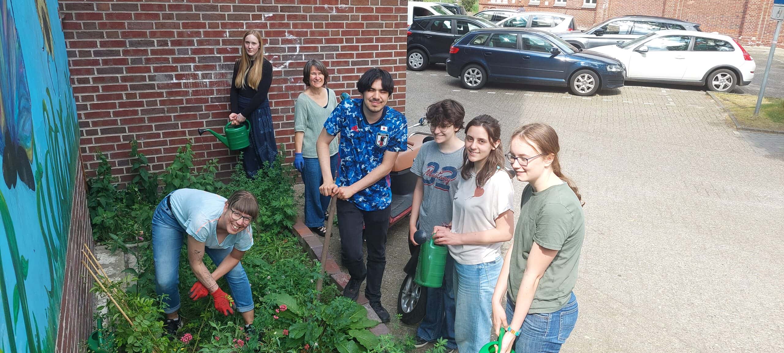 Gerade gepflanzt und schon am Blühen! Die earth action!-AG hat das kleine Beet unter unserer Insektenwand um eine Ramblerrose namens „Hermann Schmidt“ aus biologischem Anbau ergänzt. Noch ist sie klein, doch soll sie in den nächsten Jahren bei guter Pflege an der Wand entlang bis in Höhen von drei Metern wachsen. Da sie öfterblühend und ihre Blüten ungefüllt sind, stellt sie eine ideale Nahrungsquelle für Insekten dar. Außerdem ist sie hübsch und duftet gut – so haben alle was davon! Herzlichen Dank an die Untere Naturschutzbehörde der Stadt Oldenburg, die uns den Kauf der Rose ermöglichte!