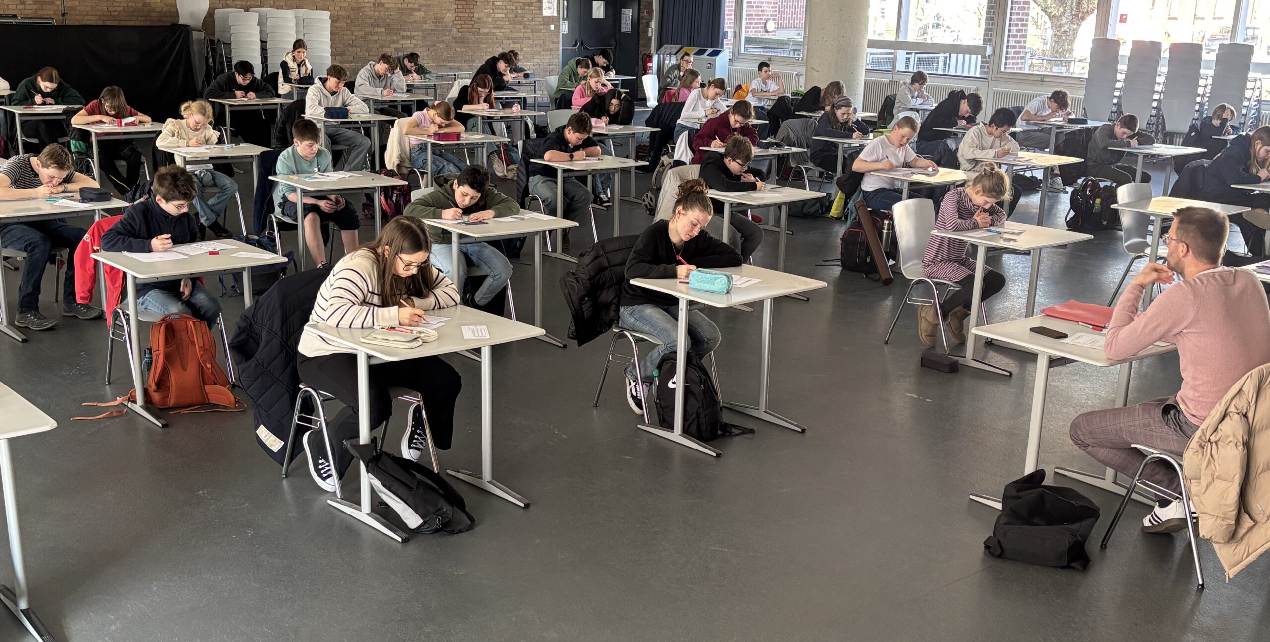 Auch in diesem Jahr haben wieder knapp 200 Schülerinnen und Schüler der Jahrgänge 5 bis 11 am Wettbewerb „Känguru der Mathematik“ teilgenommen. In Klassenräumen und in der Aula wurde am Donnerstag über 75 Minuten lang konzentriert geknobelt und gerechnet. Nun erwarten alle mit Spannung die Ergebnisse!