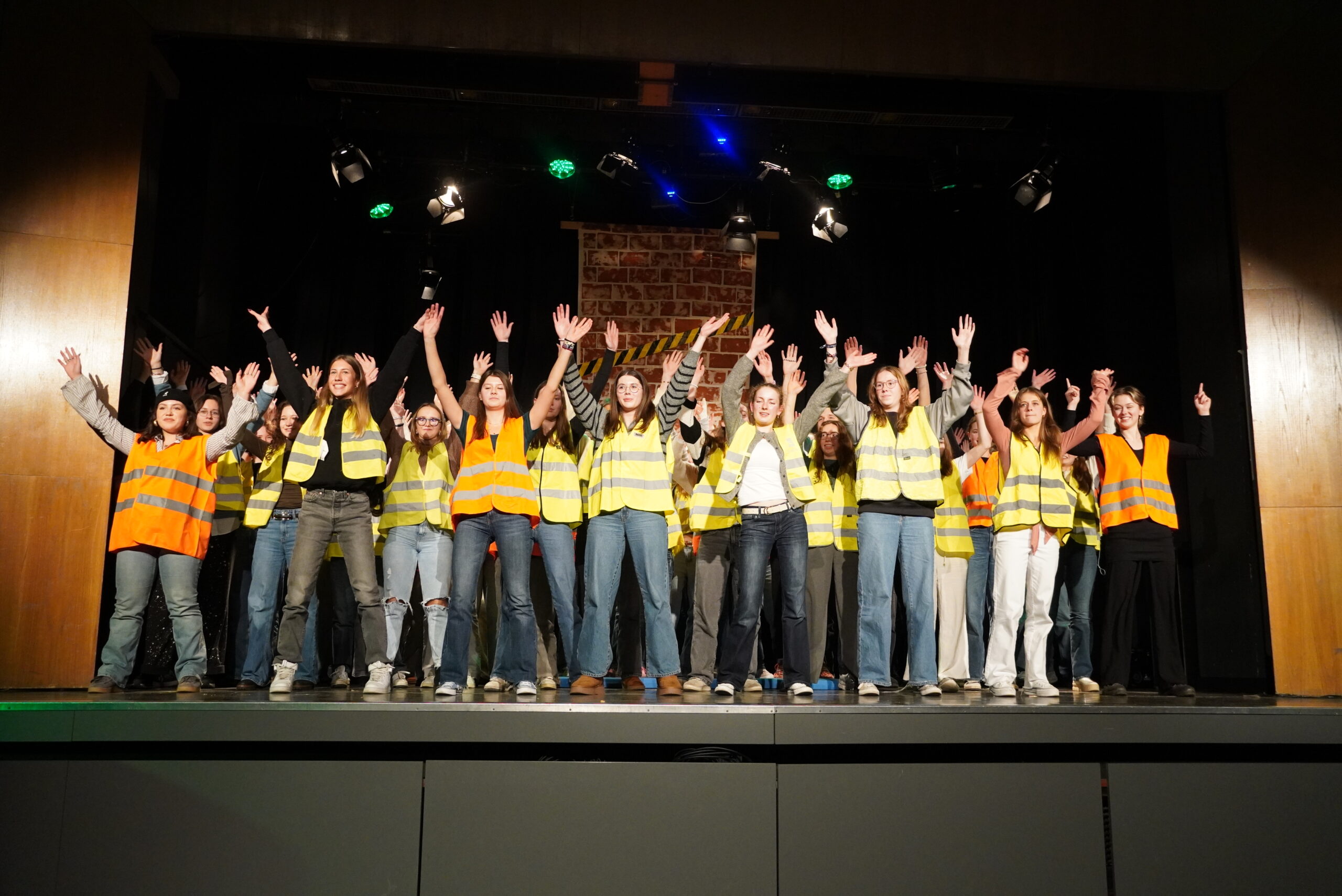Lieder erkennen, geschichtliche Ereignisse einordnen, sportliche Aktivitäten wie Tanz, Lehrerinnen und Lehrer und die Schülerschaft – das mag zunächst nach einem normalen Schultag klingen, sind aber Programmpunkte aus dem und Beteiligte am Illustren Abend der Q2 am Freitagabend. Die Schülerinnen und Schüler präsentierten ein umfangreiches und breit gefächertes Programm mit zahlreichen Klassikern: Lehrerparodien, Lehrer-Schüler-Duelle und der Jahrgangstanz zum Abschluss. Hinzu kamen die Versteigerung von parallel zum Illustren Abend gemalten Bildern (vorgegebene Begriffe: Insel, Freiheit, Basketball), Musikeinlagen und eine Tanzeinlage mit Herrn Heise als special guest. Als besonders kniffelig erwies sich bei den Duell-Spielen die Zuordnung von Kinderbildern zu den angehenden Abiturientinnen und Abiturienten und der Lehrerschaft. Nicht nur die anwesenden Eltern in der vollbesetzten Aula dürften Gedanken durch den Kopf geschossen sein, wie schnell sich diese eben noch kleinen Kinder entwickelt haben und groß geworden sind…