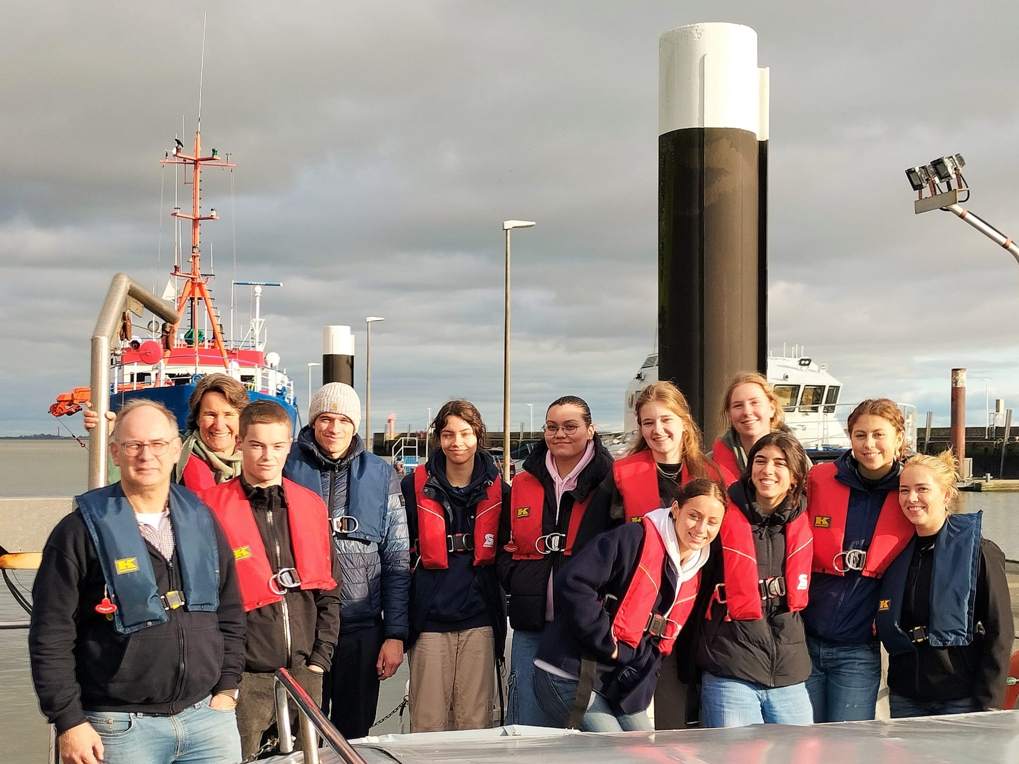 Wir waren am vergangen Mittwoch, den 30. Oktober, mit dem Erdkunde-LK der Q2 von Frau Tellechea auf einer Exkursion in Wilhelmshaven beim ICBM (Institut für Chemie und Biologie des Meeres). Dabei haben wir viele interessante Informationen über Meeresströmungen und die aktuelle Forschung im Meer erfahren, welches auch unser Semesterthema ist. Dabei haben wir unter anderem zwei „Drifter“ von einem kleinen Forschungsschiff aus im Jadebusen bei Wilhelmshaven ausgesetzt. Mit diesen können die Meeresströmungen verfolgt und die Verteilung von Plastikmüll z.B. in der Nordsee erfasst werden. Wir können die „Drifter“ durch einen GPS-Tracker, welcher sich im Inneren befindet, für die nächsten Wochen verfolgen, dies kann man auf dem Bild unten sehen.