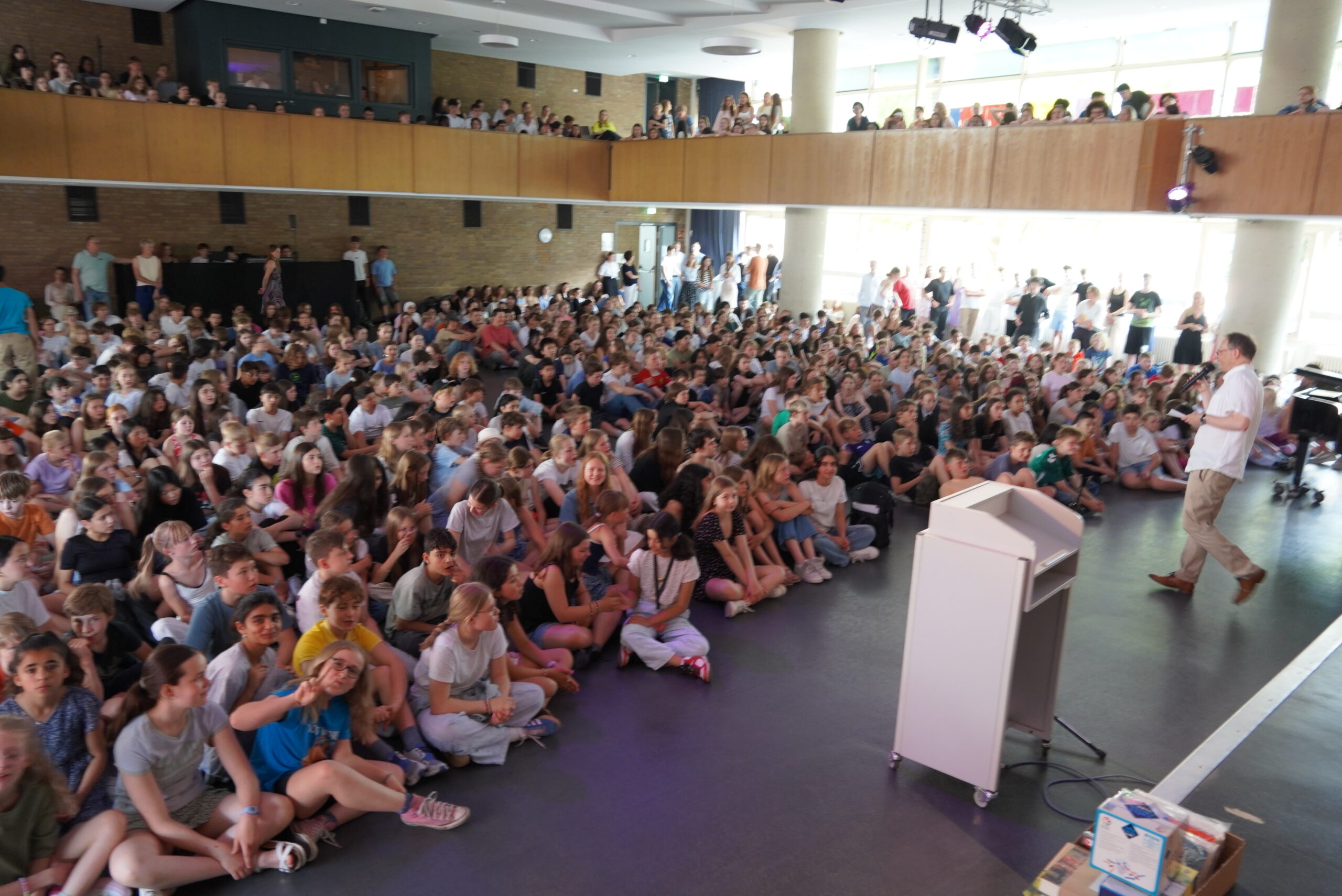Letzter Schultag, Zeugnisausgabe, ab in die Sommerferien an einem glutheißen Tag. Doch dazwischen gibt es noch besondere Momente: in der ersten Stunde haben viele Klassen und Kurse zum Abschluss gefrühstückt und gespielt, in der Aulaveranstaltung in der 2. Stunde wurden Schülerinnen und Schüler für besondere Leistung geehrt (z.B. Deutsches Sprachdiplom, Känguru-Wettbewerb, Informatik-Wettbewerb, Jugend trainiert für Olympia und andere) und die verabschiedet, die die Cäci verlassen – wegen eines Schulwechsels in der Schülerschaft und bei den Lehrkräften diejenigen, die ihr Referendariat abschließen, ihre Vertretungstätigkeit endet oder ihr Bundesfreiwilligendienst – oder die Schulzeit insgesamt. So haben wir Frau Schenk-Tillmann in den wohlverdienten Ruhestand verabschiedet. Allen Scheidenden wünschen wir alles erdenklich Gute für ihre Zukunft, und wir freuen uns auf ein Wiedersehen!