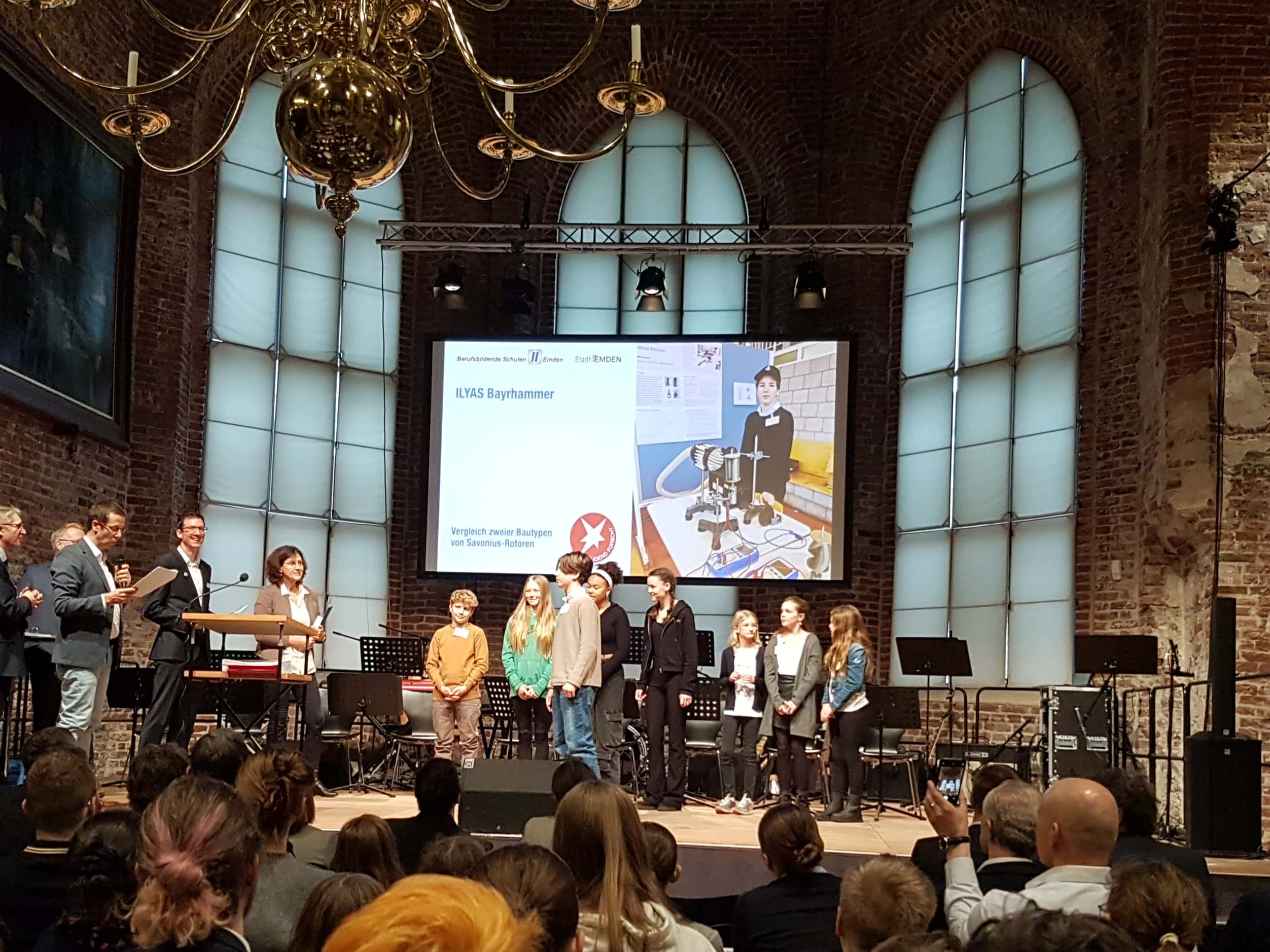 Als einziger Vertreter der Cäci war Ilyas Bayrhammer, 6. Klasse, am 15. und 16. Februar beim Regionalwettbewerb von „jugend forscht“ in der Alterssparte „Schüler experimentieren“ (bis 14 Jahre) in Emden angetreten. Er stellte dort im Bereich Technik sein Projekt „Vergleich der Bauweisen zweier Savonius-Rotoren“ vor, für das er die unterschiedliche Effizienz von 3d-gedruckten Rotoren untersucht hatte. Das Projekt wurde von Herrn Dr. Hannibal in der AG Natur-Umwelt-Technik betreut. Bei der Preisverleihung in der Johannes a Lasco- Bibliothek in Emden bekam er für seinen gelungenen Vortrag den Sonderpreis „Hervorragende Präsentation“ der Naturforschenden Gesellschaft zu Emden überreicht – ein schöner Achtungserfolg bei seiner ersten Wettbewerbsteilnahme. Herzlichen Glückwunsch!