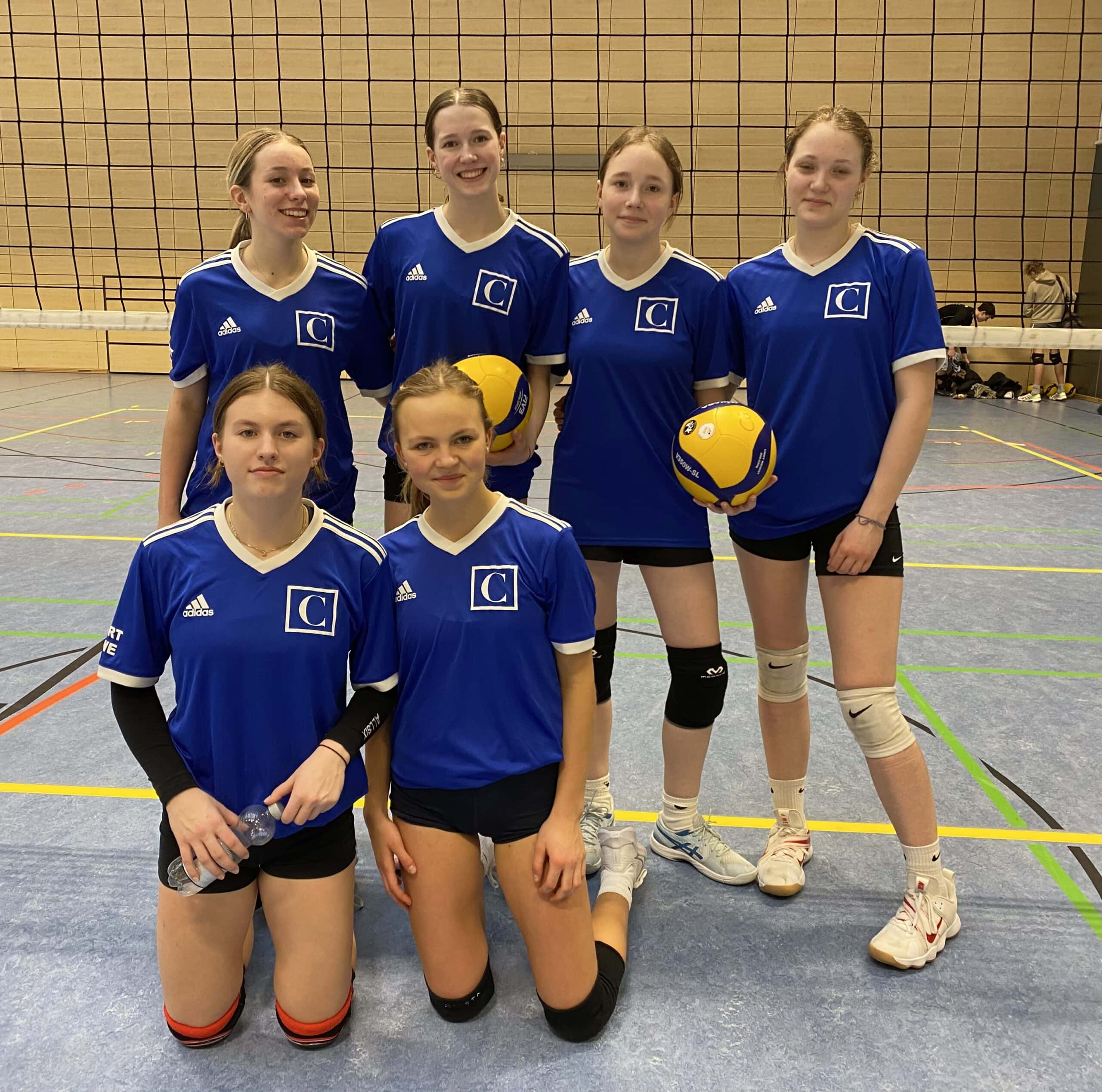 Das Cäci-Volleyballteam, bestehend aus Mila und Leni in der vorderen Reihe und Lina, Lotte, Fleur und Lena in der hinteren Reihe, hat sich am 23.01.2024 in der IGS Flötenteich gegen sehr starke Gegnerinnen nicht unterkriegen lassen. Für die nächste Runde, den Landesentscheid, hat es trotz spannender Spielphasen leider nicht gereicht. Wir gratulieren trotzdem zu jedem guten und gelungenen Ballwechsel und halten die Daumen für das nächste Mal!
