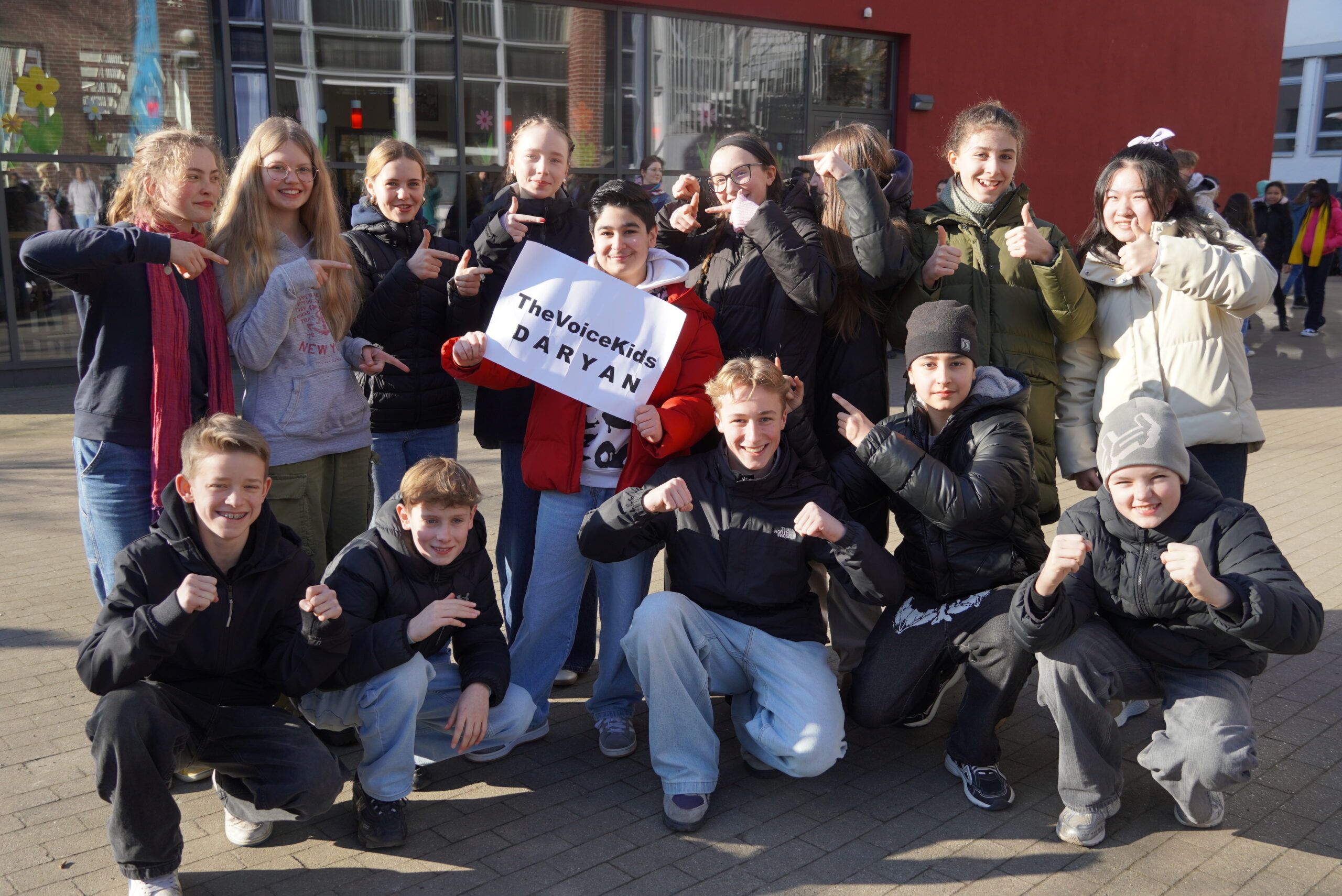 Wer kann an der Cäci schon von sich behaupten, aus Fernsehen und Zeitung in positiver Weise bekannt zu sein? Wenige, aber Daryan Mirani aus der 8c gehört dazu, da er bei der diesjährigen Staffel von „The Voice Kids“ mitmacht und bei der Blind Audition, die am vergangenen Freitag ausgestrahlt worden ist, zwei der Juroren für sich einnehmen und zum Buzzern bewegen konnte. Bereits bei dieser Ausstrahlung saßen intensiven Recherchen zufolge Mitglieder der Cäci-Schulgemeinschaft (und nicht nur aus der Schülerschaft!) live und Daumen drückend vor dem Fernseher, auch wenn eine Aufzeichnung abgespielt wurde. Wir wünschen Daryan für die folgenden Auftritte viel Erfolg und hoffen natürlich auf einen Einzug ins Finale! Die gedrückten Daumen seiner Klasse sind hier sicherlich nur Stellvertreter für alle anderen. Toi, toi, toi!