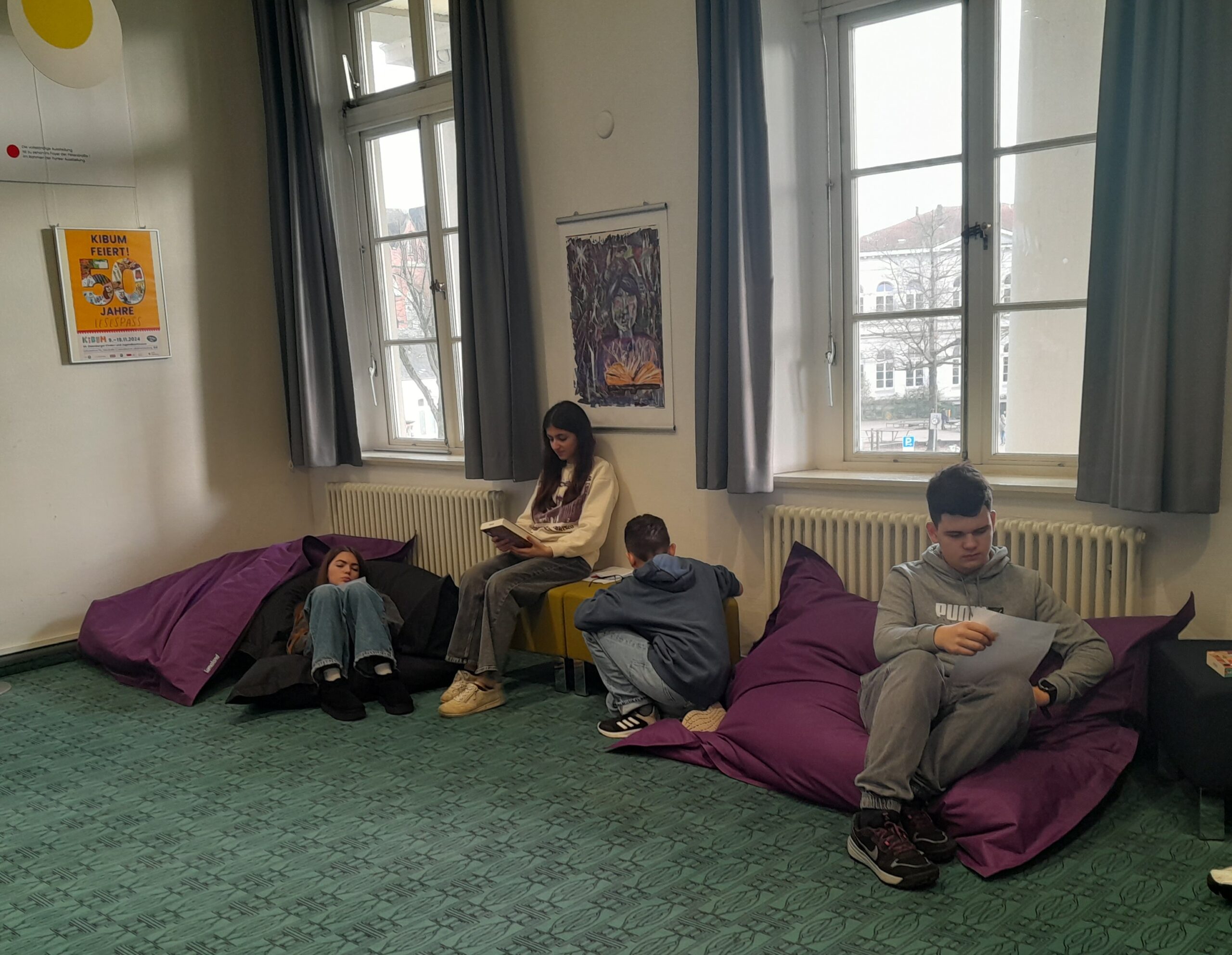 Verschiedene Lerngruppen haben die diesjährige KIBUM erlebt – bei uns im Haus durch zwei Autorenlesungen und einige auch im PFL beim Besuch der KIBUM-Ausstellung. Am Dienstag, den 12.11. war die DaZ-Lerngruppe (B1) zu Besuch auf der KIBUM. Mit einem Quiz lernten die Schülerinnen und Schüler die KIBUM besser kennen und hatten auch zum Schluss des Unterrichtsgangs noch genügend Zeit, in spannende Bücher aller Art hineinzulesen und den Besuch gemütlich ausklingen zu lassen.